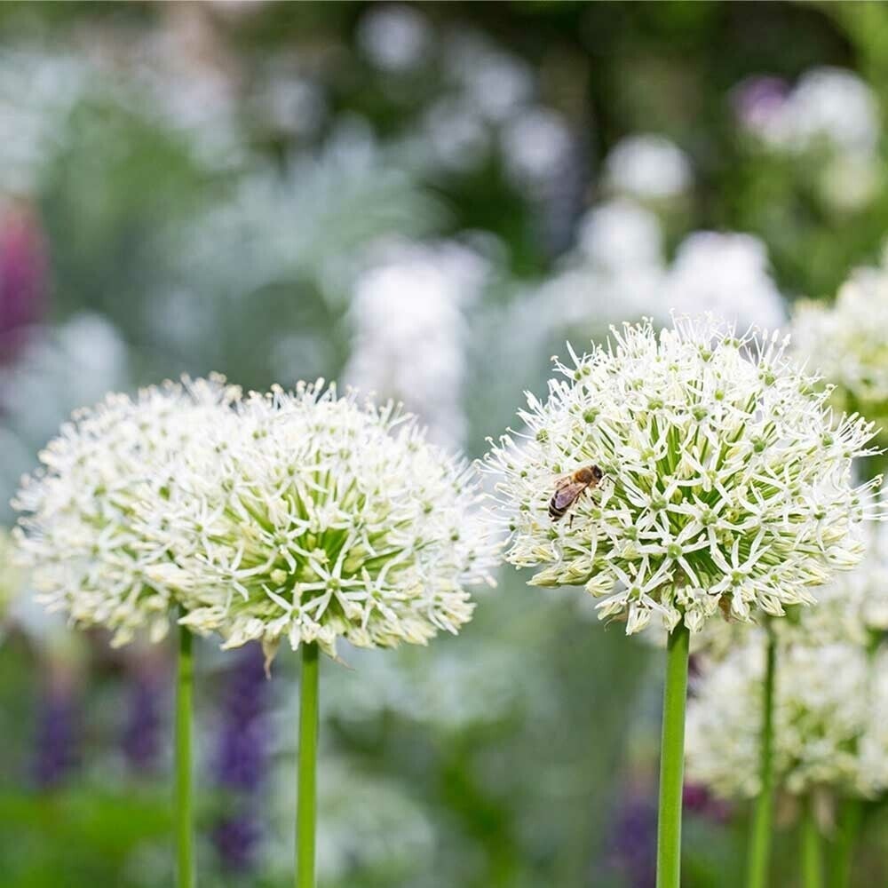 Zeer mooie Allium met grote bloemen (20 cm. doorsnede). Robuuste stengels en een helder witte kleur. U kunt Allium het best in groepjes planten. U kunt de blollen jaarlijks delen.