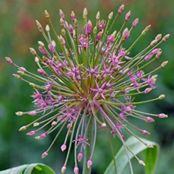 Vuurwerk in de tuin met deze Allium Schubertii. De bloem heeft een doorsnede van 30 cm. Deze Allium wordt 40 à 50 cm. hoog. Deze Allium is ook zeerdecoratief als droogbloem.