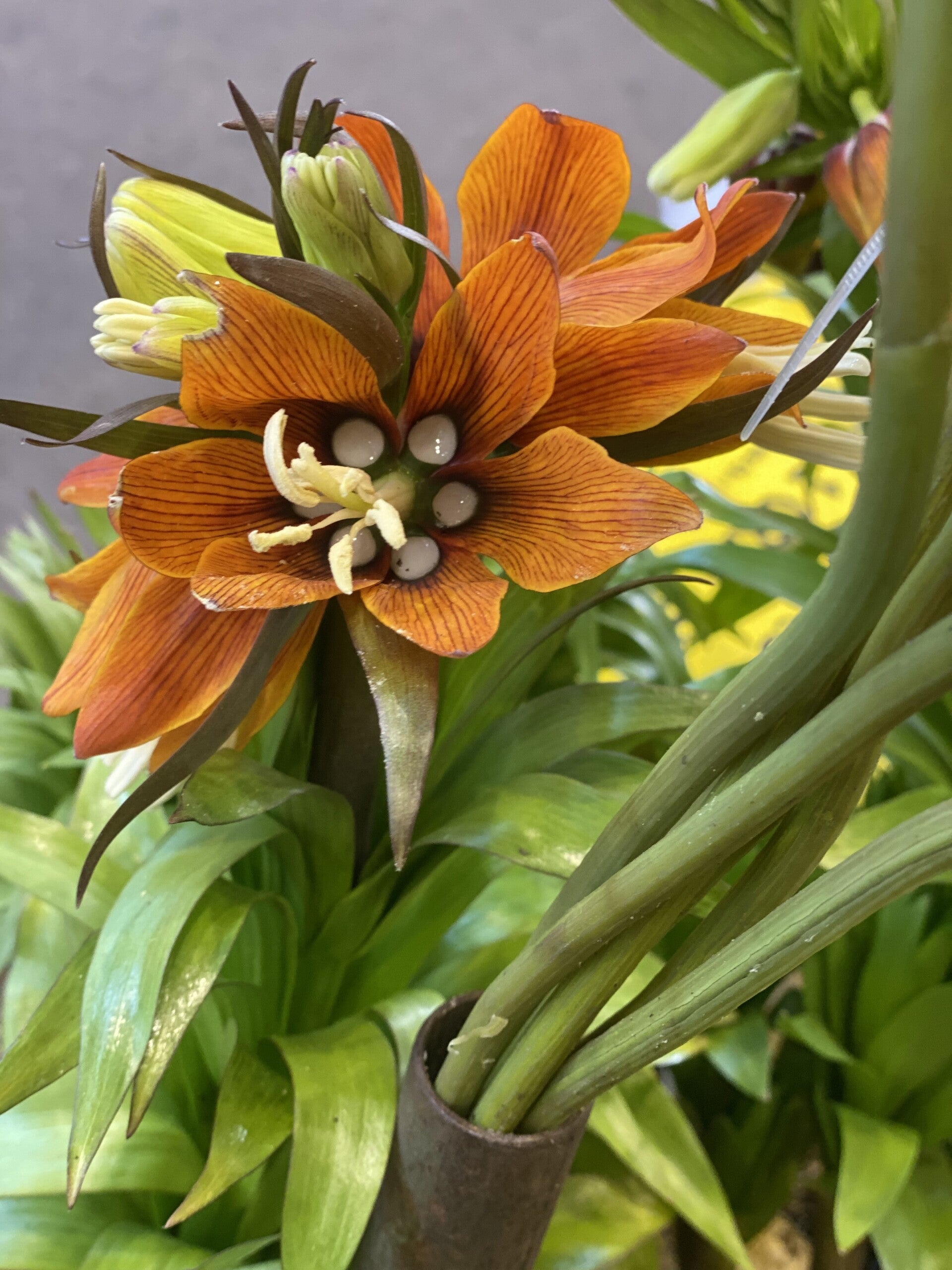 De stevige stengel groeit snel tot 90–120 cm lengte. Het onderste derde of halve deel van de stengel is bezet met vele, brede, staande tot hangende bladeren. De bovenste helft van de stengel draagt geen bladeren tot aan de bloemtros. Boven op de tros zit een kroon van glanzende, smalle bladeren. De bloeitijd is van maart tot juni. De bollen worden 20 centimeter onder de aarde geplant.