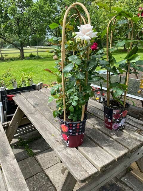 Een goede start is het halve werk! Zet de roos het liefst een beetje zonnig en op goed vochtdoorlatende grond. Voeg wat zwarte grond of potgrond aan het plantgat toe. Bedenk dat de plant 2 meter hoog kan worden, dus zet hem tegen een muur, een rek, een pergola