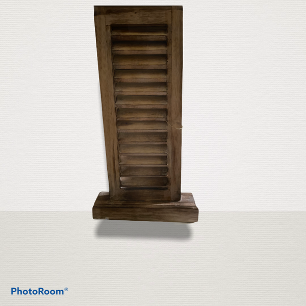 Dit luik is 60 cm hoog, 32 cm breed en ongeveer 8 cm dik. De lamellen zijn niet verstelbaar.