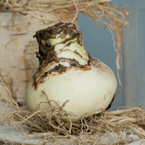Als droge bol – de Hippeastrum komt ook als droge bloembol tot bloei. Ze kan zelfs zonder water of aarde bloeien. Leg ze op een mooie schaal of verwerk ze in een bloemstuk. Besproei ze af en toe met water of leg ze af en toe een poosje in een bak water.