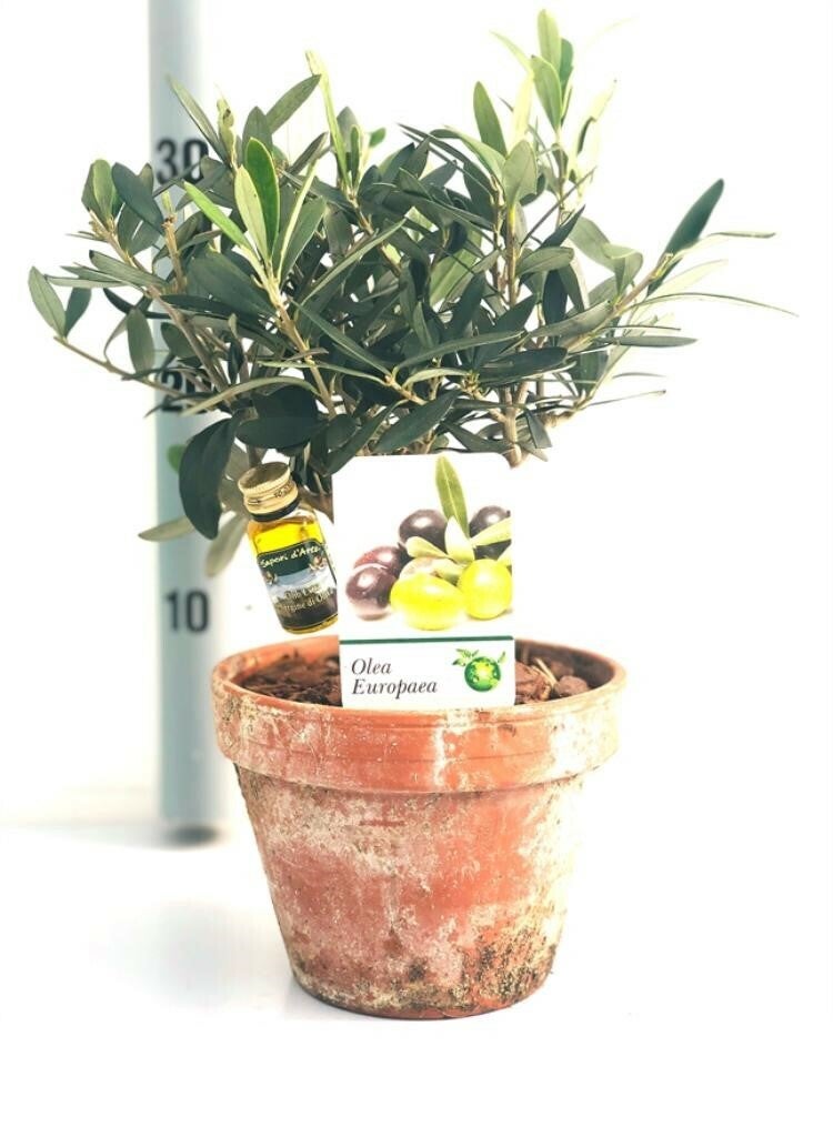 In mei en juni bloeit de olijfboom met kleine, crèmekleurige bloemetjes. Het boompje dient altijd in een licht vochtige grond te staan wat betekent dat twee tot drie keer per week water geven niet overbodig is in de zomermaanden. Voorkom echter wortelrot door steeds kleine beetjes water te geven.